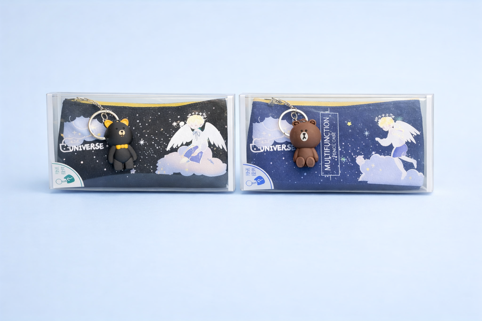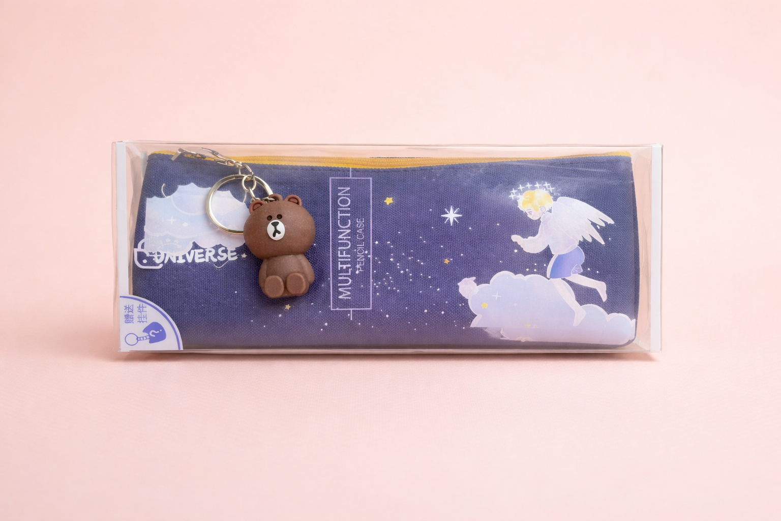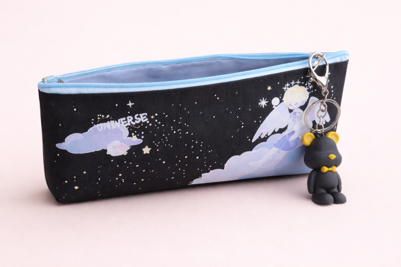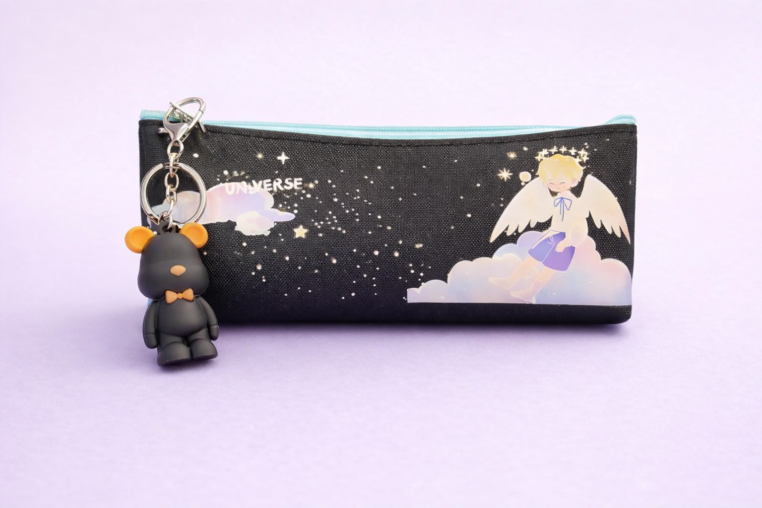 The smooth zip closure and soft inner lining keep stationery essentials secure, while the charming angel keychain adds just the right hint of personality—without compromising on sophistication.